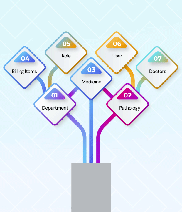 Create a strong foundation for your hospital's digital ecosystem with our robust Master Data Management (MDM) module. Ektos Health ensures that all critical reference data—departments, services, doctors, rates, inventory items, diagnostic codes, and more—are organized, standardized, and centrally managed.